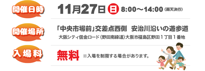協力:なにわあきんど塾同友会/水上アクセス魅力向上事業実行委員会/福島区地域振興会野田連合町会/ 福島区食生活改善推進員協議会 ほか