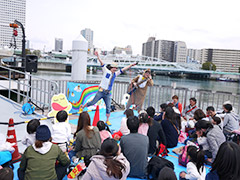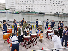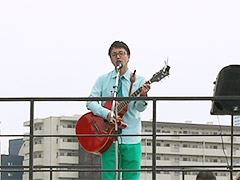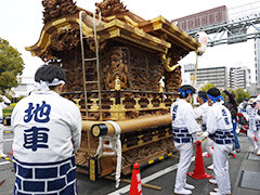今回はざこばの朝市のテーマソング発表や、野田恵美須神社のだんじりでハッピを着て記念撮影など