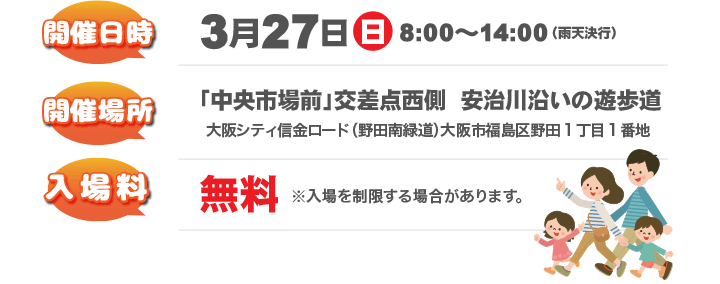 協力: なにわあきんど塾同友会/福島区地域振興会野田連合町会/ 福島区食生活改善推進員協議会/京阪電気鉄道(株) ほか