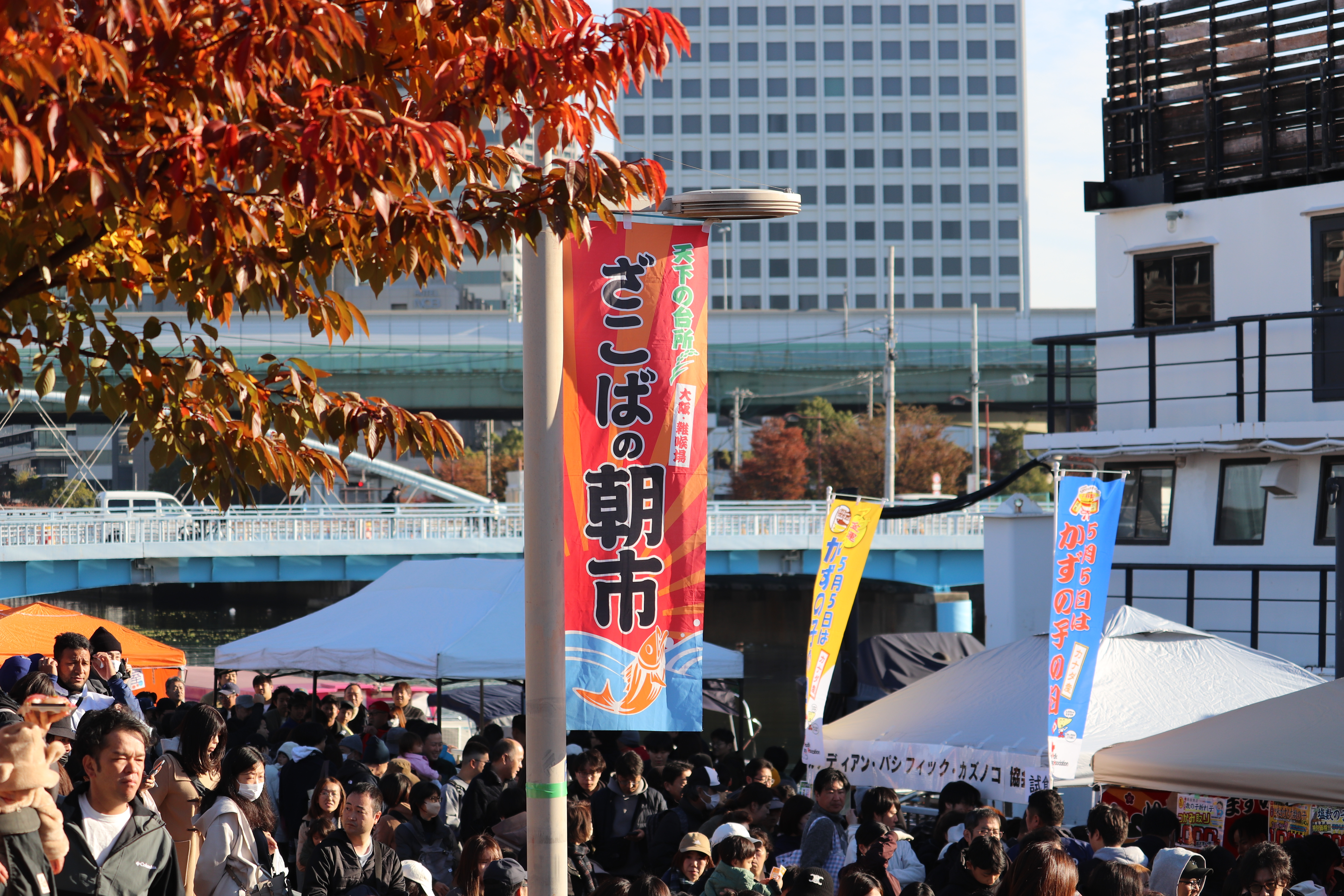 主催:ざこばの朝市プロジェクト実行委員会 共催:大阪市福島区役所 後援:大阪府中小企業家同友会北支部 協力:なにわあきんど塾同友会/福島区地域振興会野田連合町会/ 福島区食生活改善推進員協議会 ほか
