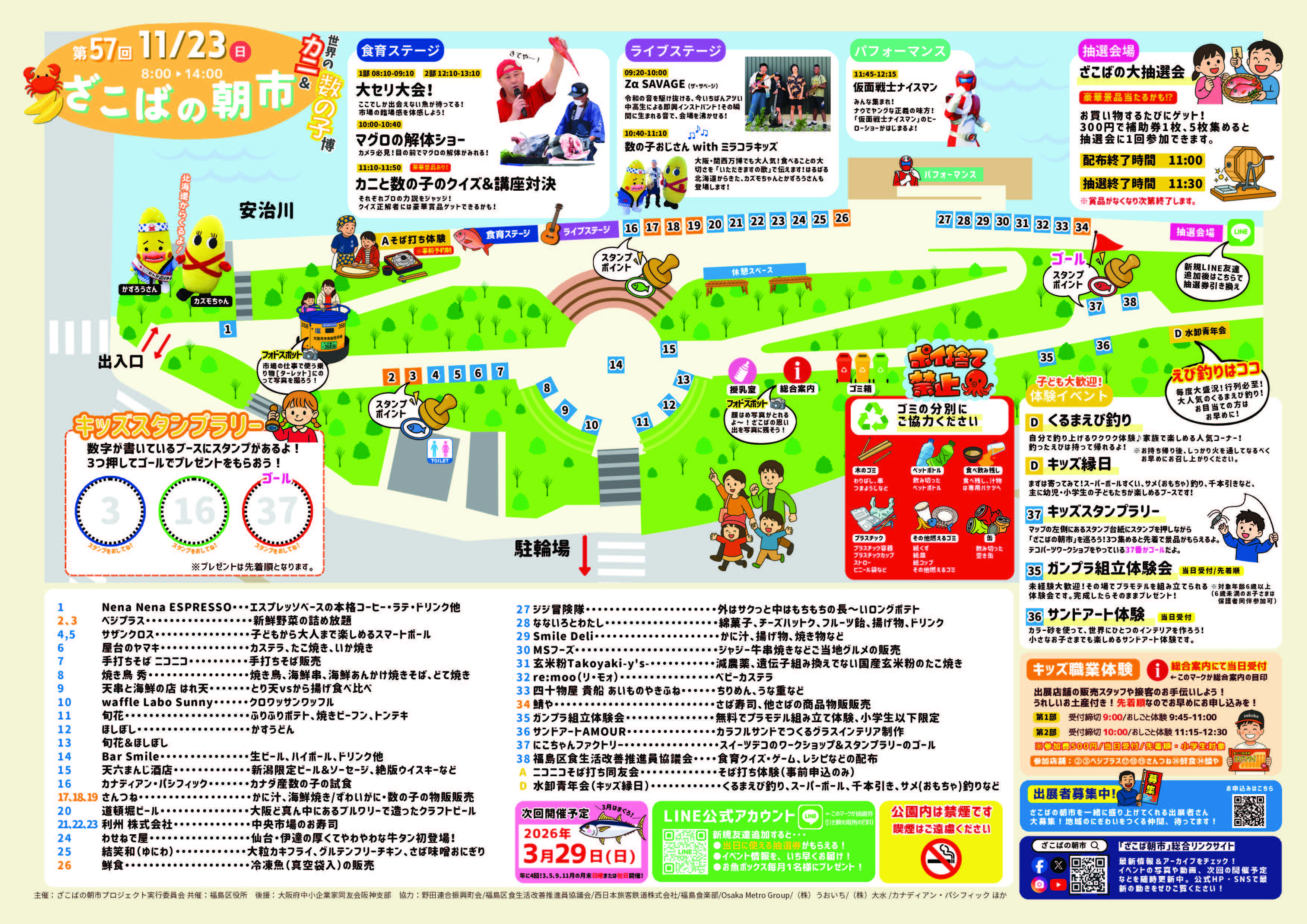 次回は11月23日開催予定です。 - 2025/09/20 第56回ざこばの朝市のマップを公開しました